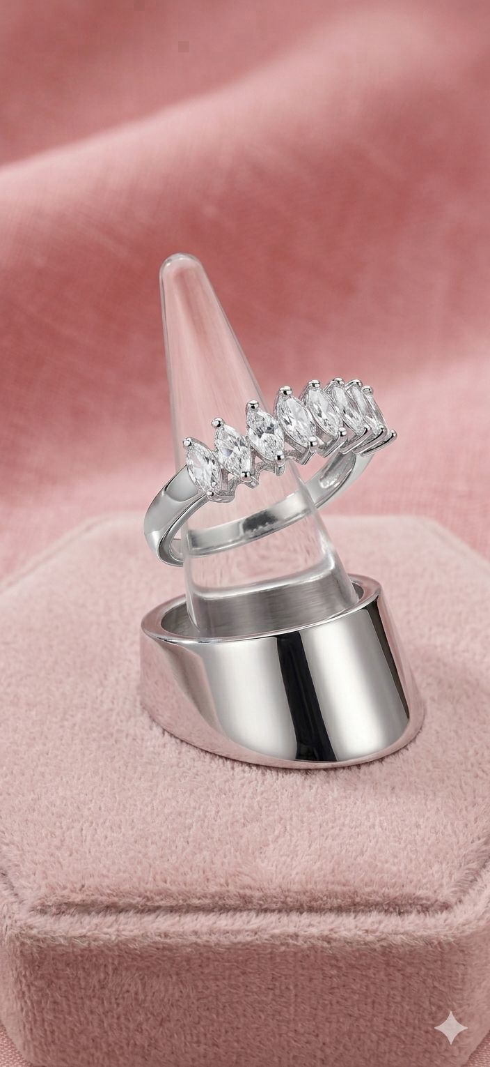 Anel de prata com pedras de Zircônia Branca translúcida. Antialérico, com excelente acabamento e 1 ano de garantia.
