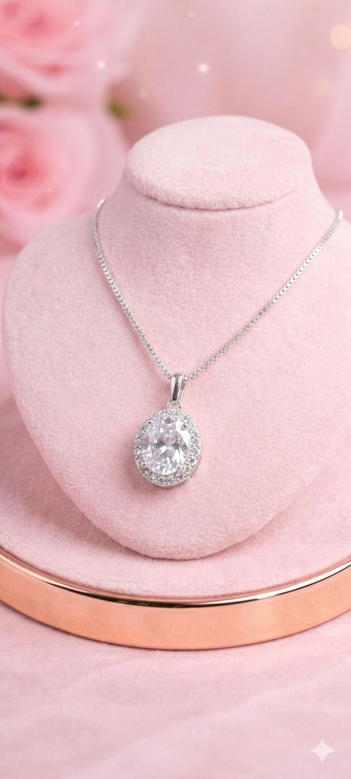 Colar de prata com pingente em pedra de Zircônia Branca translúcida. Antialérgico, com excelente acabamento e 1 ano de garantia.
